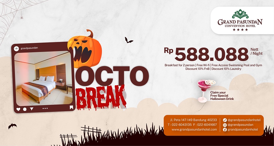 Bisnishotel.id, BANDUNG — Menyambut bulan Oktober yang identik dengan suasana Halloween, Grand Pasundan Convention Hotel menghadirkan promo spesial bertajuk “OctoBreak”. Promo ini menawarkan pengalaman menginap seru dengan harga spesial Rp588.088 net per kamar per malam, lengkap dengan berbagai fasilitas menarik untuk dinikmati bersama keluarga, pasangan, maupun sahabat. Melalui promo ini, tamu akan mendapatkan sejumlah keuntungan, antara lain sarapan untuk dua orang, akses gratis ke kolam renang dan gym, Wi-Fi gratis, serta diskon 10% untuk food & beverage dan layanan laundry. Sebagai tambahan, Grand Pasundan Convention Hotel juga memberikan Free Special…