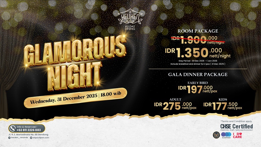 Bisnishotel.id, Bandung — Menyambut pergantian tahun yang penuh semangat, Hotel De Paviljoen Bandung memperkenalkan dua konsep pesta eksklusif dalam acara Showcase “New Year Celebration 2026”, yang digelar di Keuken All Day Dining, Rabu (15/10/2025). Ajang ini menjadi perkenalan resmi konsep perayaan malam tahun baru yang akan dihadirkan pada malam pergantian tahun mendatang dengan 86 menu hidangan yang akan disajikan mulai dari menu nusantara hingga western. Tahun ini, De Paviljoen Bandung kembali menawarkan dua tema berbeda yang dirancang untuk memberikan pengalaman istimewa bagi para tamu, yakni: Pertama, “Glamorous Night” – Elegant…