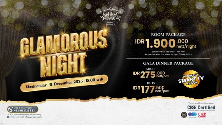 Bisnishotel.id, BANDUNG – De Paviljoen Bandung menyiapkan dua rangkaian acara spesial untuk menyambut pergantian tahun 2025 menuju 2026. Melalui konsep “Glamorous Night” dan “Y2K Vibes Party”, hotel ini menawarkan pilihan perayaan malam tahun baru yang menyasar segmen keluarga hingga pencinta pesta dengan nuansa modern. Perayaan bertajuk “Glamorous Night” akan digelar di Keuken All Day Dining pada Rabu, 31 Desember 2025 mulai pukul 18.00 WIB. Konsep ini menghadirkan makan malam gala dengan suasana elegan, lengkap dengan hiburan eksklusif dan atmosfer glamor yang dirancang untuk menciptakan pengalaman akhir tahun yang berkesan. Manajemen…