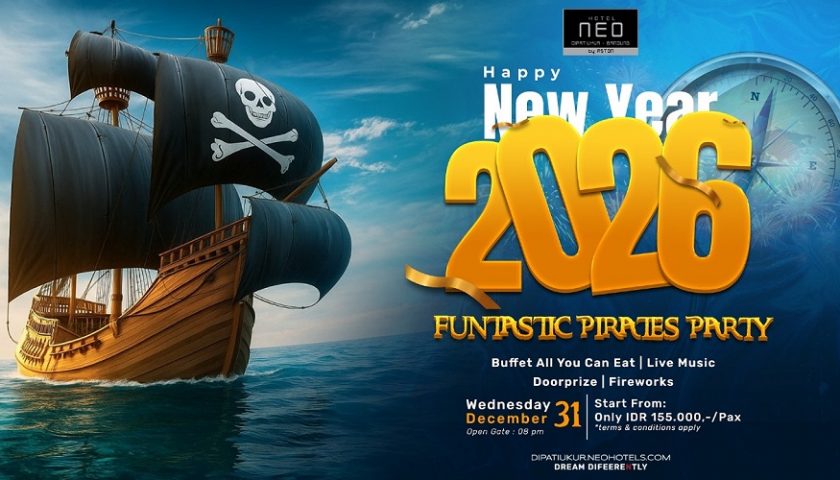 Bisnishotel.id, BANDUNG — Hotel Neo Dipatiukur Bandung menghadirkan konsep perayaan malam pergantian tahun baru yang berbeda melalui acara bertema “Funtastic Pirates Party” yang akan digelar pada 31 Desember 2025 di Radiant All & Pool Bar. Perayaan ini dikemas sebagai pesta akhir tahun yang meriah dan penuh hiburan menuju 2026.