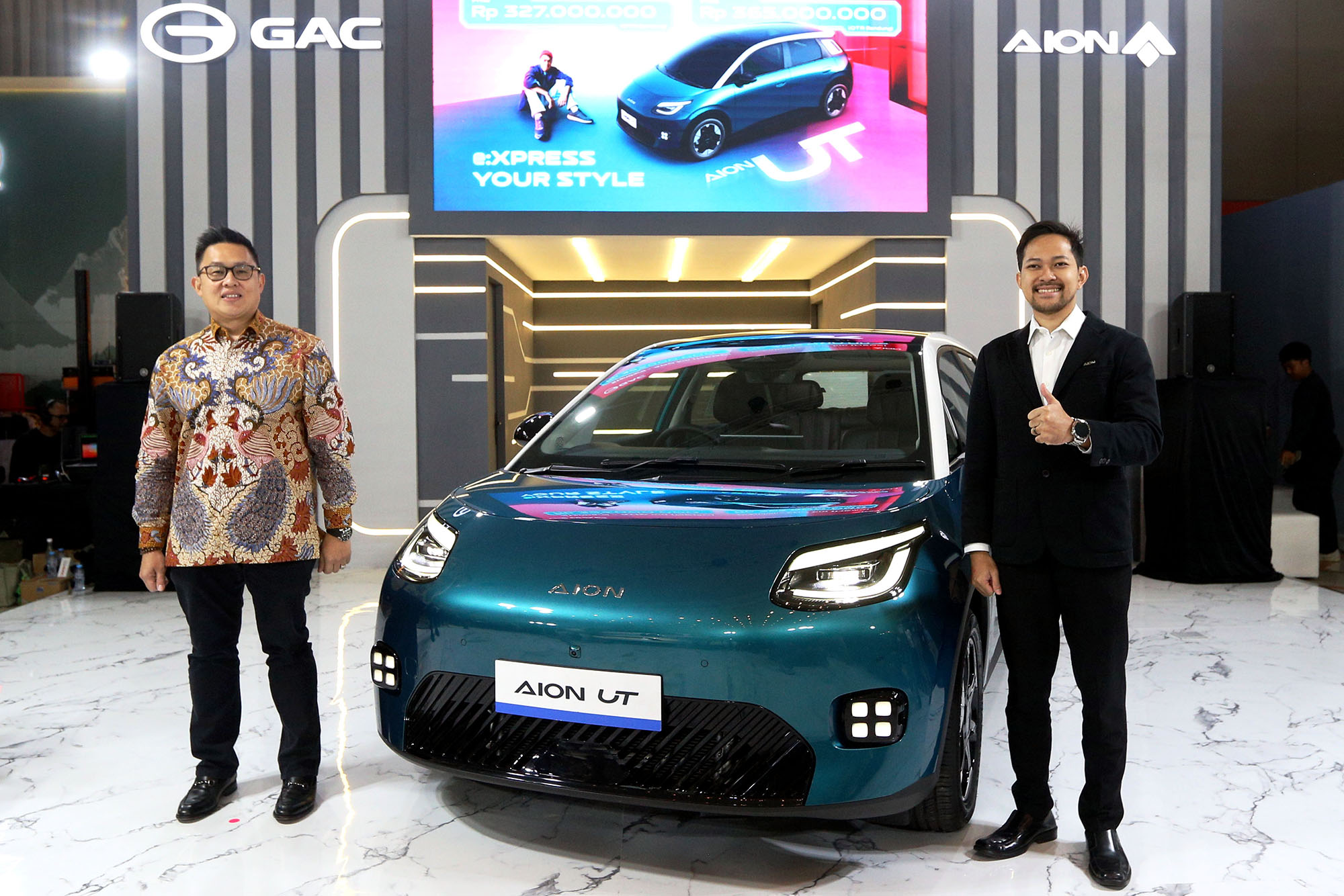 Product Planning And Strategy GAC Indonesia Iqbal Taufiqurrahman menyampaikan pemaparan saat memperkenalkan mobil listrik AION UT pada ajang Gaikindo Indonesia International Auto Show (GIIAS) Bandung 2025 di Sudirman Grand Ballroom, Bandung, Jawa Barat, Rabu (1/10/2025). CEO GAC AION Indonesia Andry Ciu (kiri) berfoto bersama Product Planning And Strategy GAC Indonesia Iqbal Taufiqurrahman saat memperkenalkan mobil listrik AION UT pada ajang Gaikindo Indonesia International Auto Show (GIIAS) Bandung 2025 di Sudirman Grand Ballroom, Bandung, Jawa Barat, Rabu (1/10/2025). Pengunjung didampingi tenaga pemasar melihat-lihat mobil listrik AION UT yang dipamerkan pada ajang Gaikindo Indonesia International Auto Show (GIIAS) Bandung 2025 di Sudirman Grand Ballroom, Bandung, Jawa…