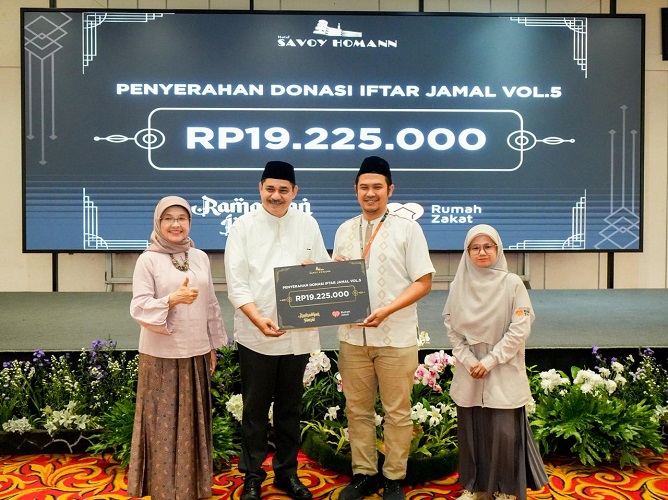 Bisnishotel.id, BANDUNG — Hotel Savoy Homann Bandung menggelar acara Halalbihalal sekaligus penyerahan donasi sebesar Rp19.225.000 dari hasil program Iftar Ramadan Jajan Sambil Beramal (Jamal) Vol.5 kepada Rumah Zakat, dalam rangkaian perayaan Idulfitri 1447 Hijriah. Program tersebut merupakan bagian dari komitmen sosial perusahaan dalam menghadirkan pengalaman berbuka puasa yang tidak hanya berkesan, tetapi juga berdampak sosial. Melalui konsep “Jajan Sambil Beramal”, sebagian hasil penjualan paket iftar dikumpulkan dan disalurkan kepada Rumah Zakat sebagai mitra dalam menjalankan berbagai program sosial dan kemanusiaan. Donasi tersebut akan dimanfaatkan untuk mendukung program pendidikan yang mencakup…