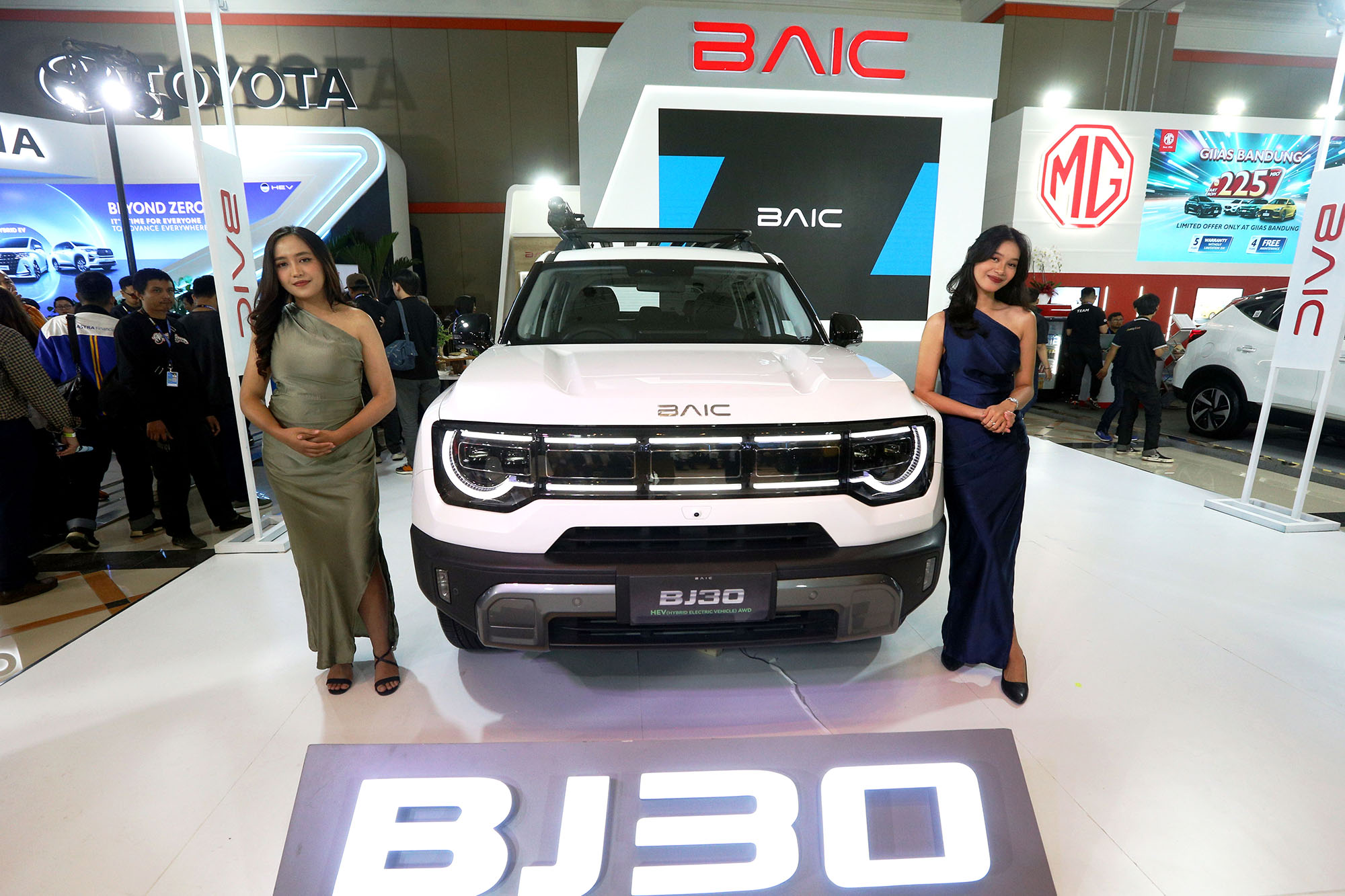 CEO PT JIO Distribusi Indonesia (JDI) adalah Johnnatann Salim (kiri) dan Chief Operating Officer BAIC Indonesia Dhani Yahya melakukan prosesi perkenalan SUV Hybrid BAIC BJ30 pada ajang Gaikindo Indonesia International Auto Show (GIIAS) Bandung 2025 di Sudirman Grand Ballroom, Bandung, Jawa Barat, Rabu (1/10/2025). Sejumlah awak media meliput prosesi perkenalan SUV Hybrid BAIC BJ30 pada ajang Gaikindo Indonesia International Auto Show (GIIAS) Bandung 2025 di Sudirman Grand Ballroom, Bandung, Jawa Barat, Rabu (1/10/2025). Aktivis lingkungan sekaligus Brand Ambassador BAIC Indonesia Agam Rinjani berpose disamping SUV 4×4 BAIC BJ40 Plus yang dipamerkan pada ajang Gaikindo Indonesia International Auto Show (GIIAS) Bandung 2025 di Sudirman…